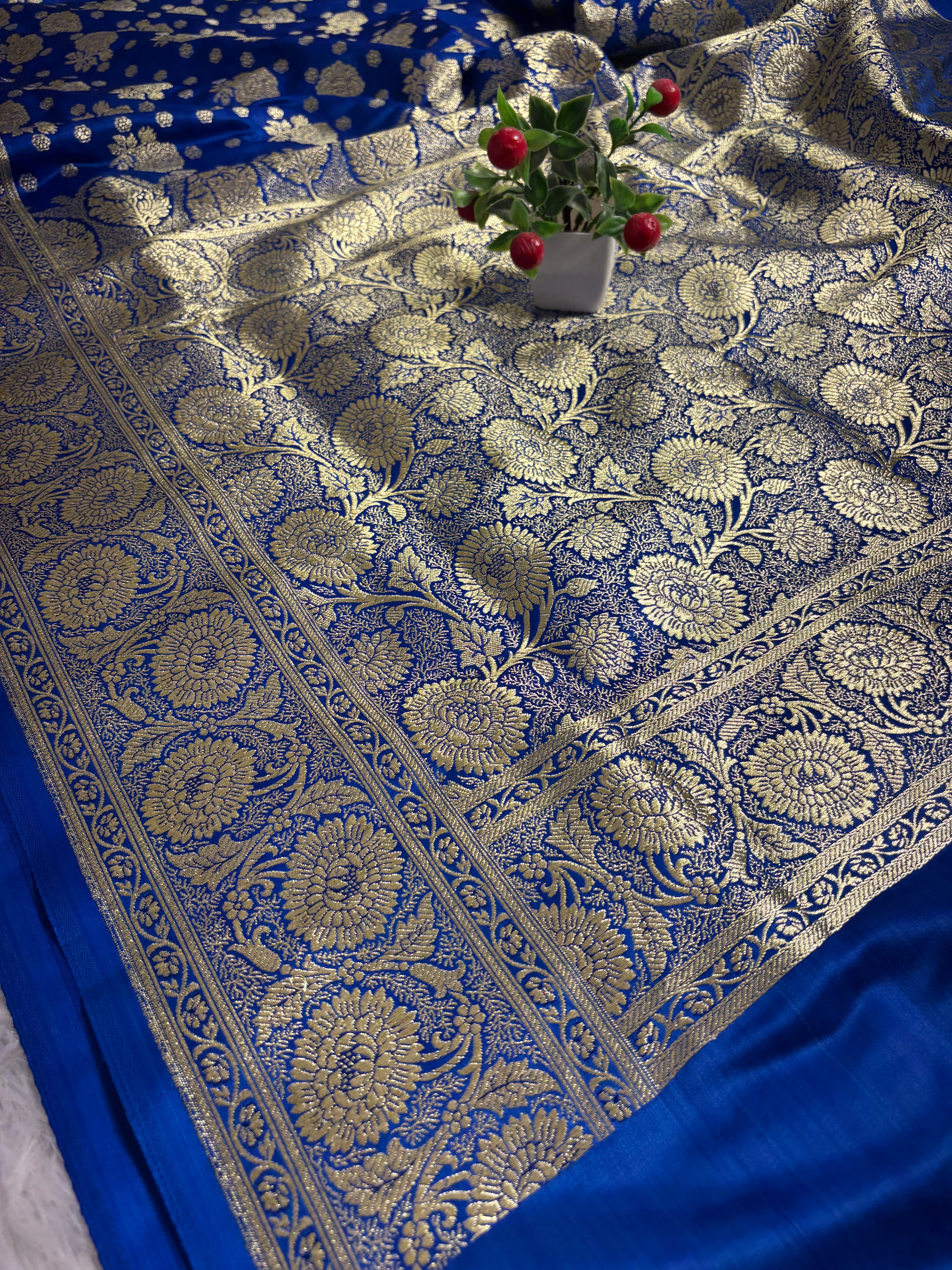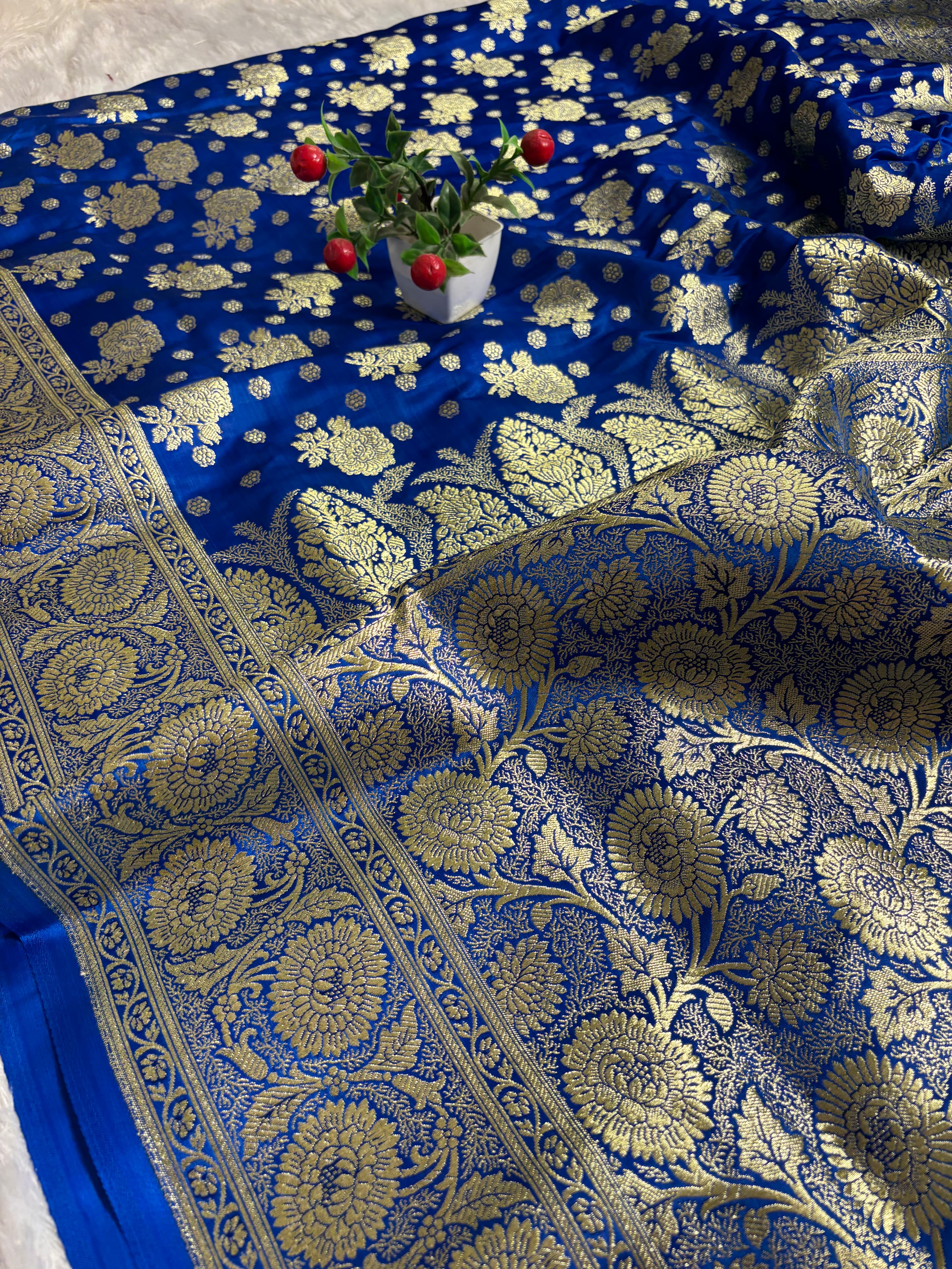 Wearing this royal blue and golden saree makes you feel regal, confident, and beautifully elegant. ✨